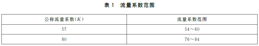 6.6.2 按 7.4 规定的方法进行试验,喷头流量系数 K 的任一测量值应符合表 1 的规定。