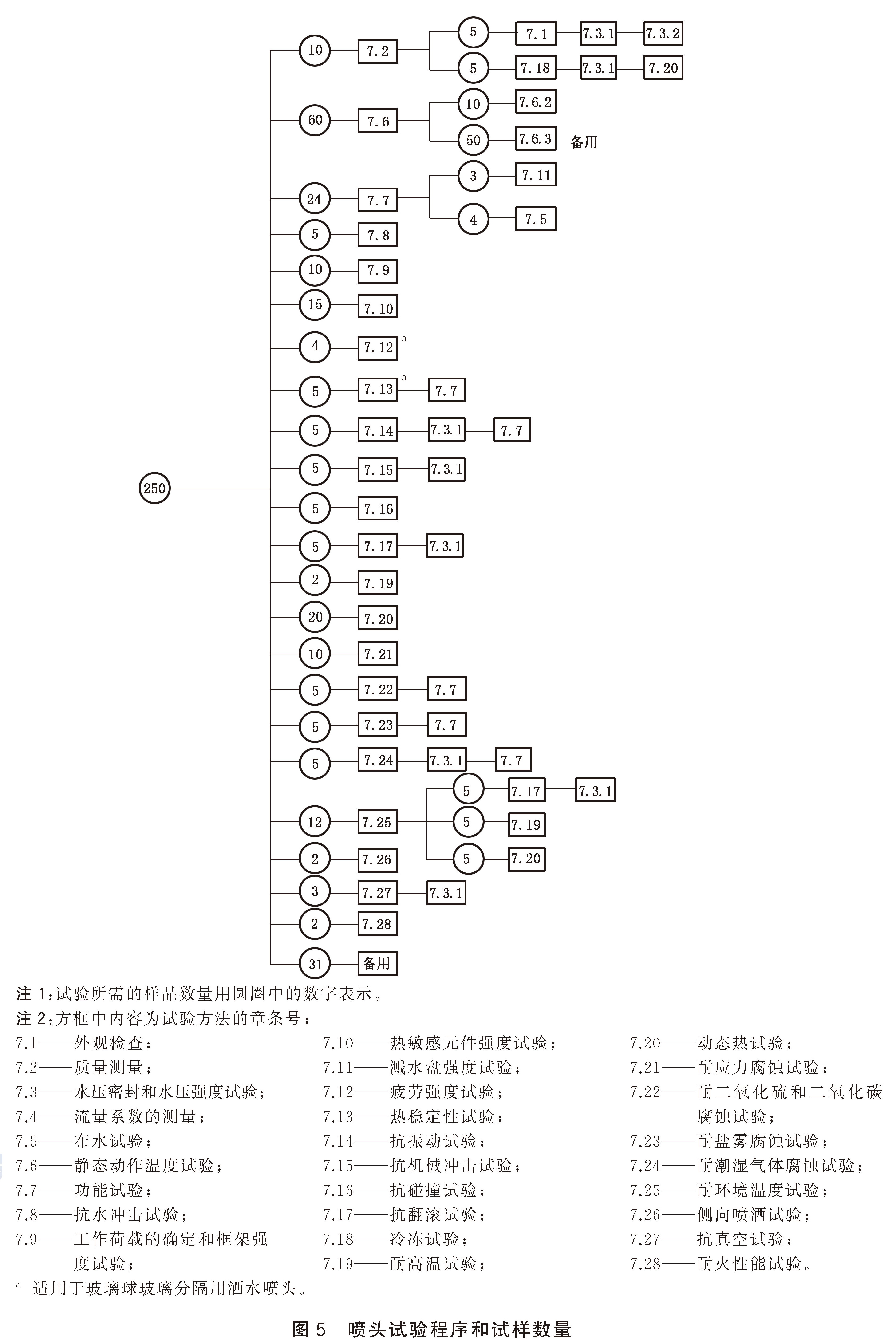 玻璃分隔用洒水喷头型式检验的试验程序和试样数量如图5所示。