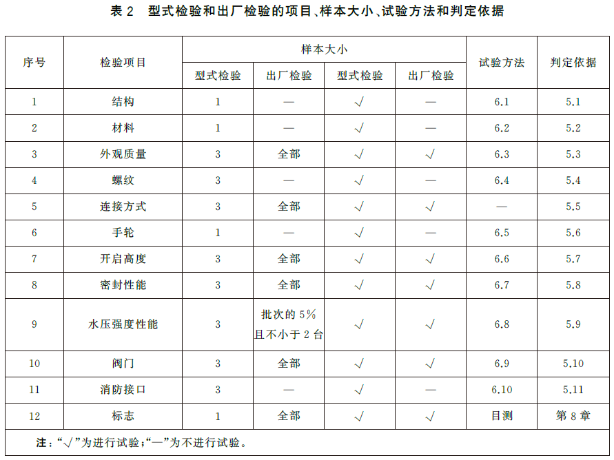 7.2.2 出厂检验的项目、样本大小、试验方法和判定依据按表 2 规定。