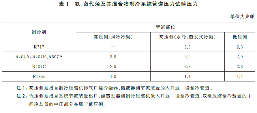 8.3.1.1 制冷系统安装或大修后,应依据系统的设计要求使用氮气或干燥清洁的压缩空气进行气压和气密试验,且应有安全措施。