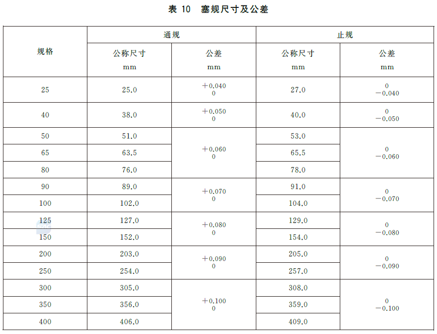 将试样两端剪切平齐用表面粗糙度Ra1.60的塞规分别测量试样两端的内径塞规尺寸及公差应符合表10的规定。判断结果是否符合 6.2 的规定。